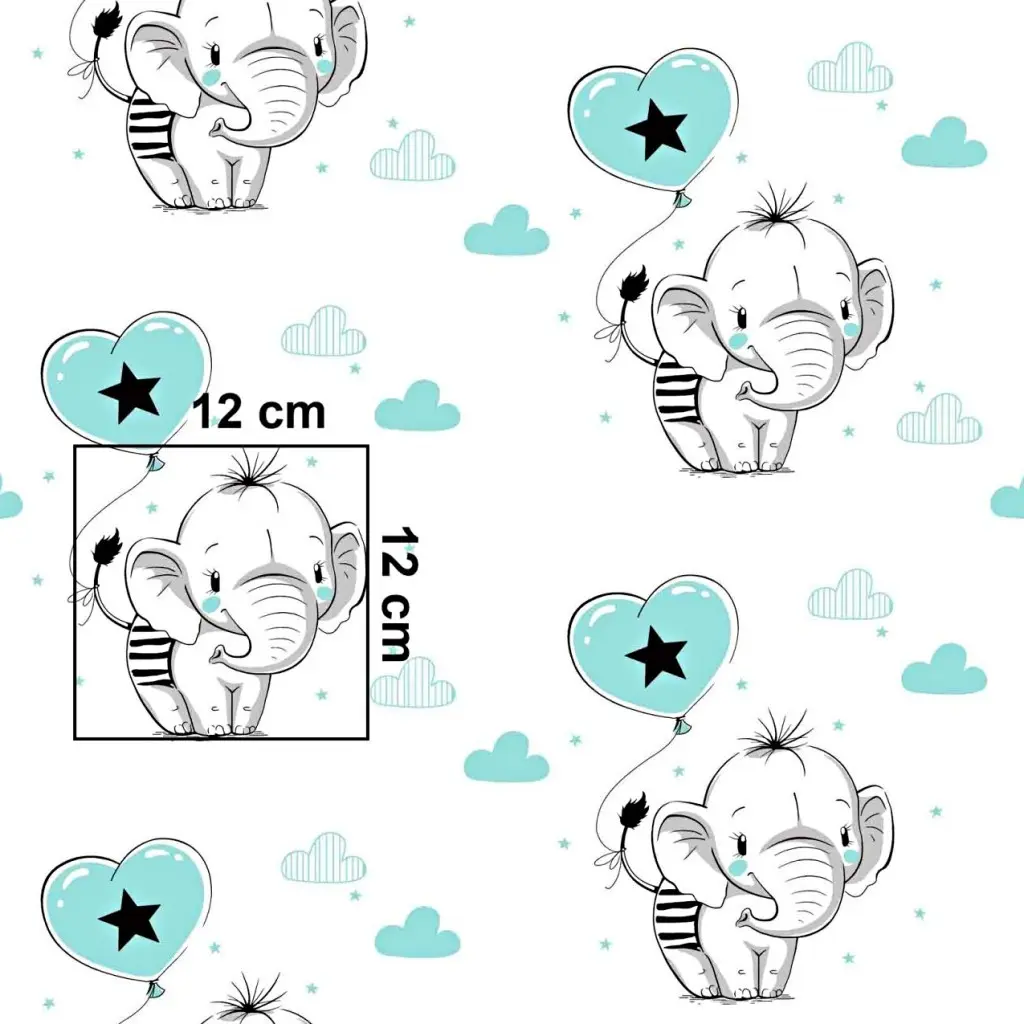 Bumbac cu Elefantei si baloane turcoaz