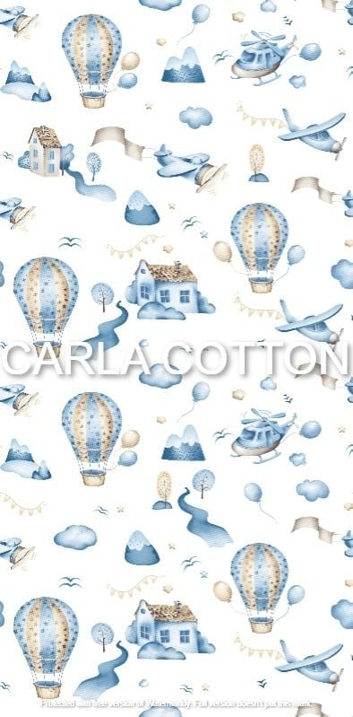 Cupon Bumbac cu Avioane si Baloane - dimensiune 0.55 x 1,60 cm