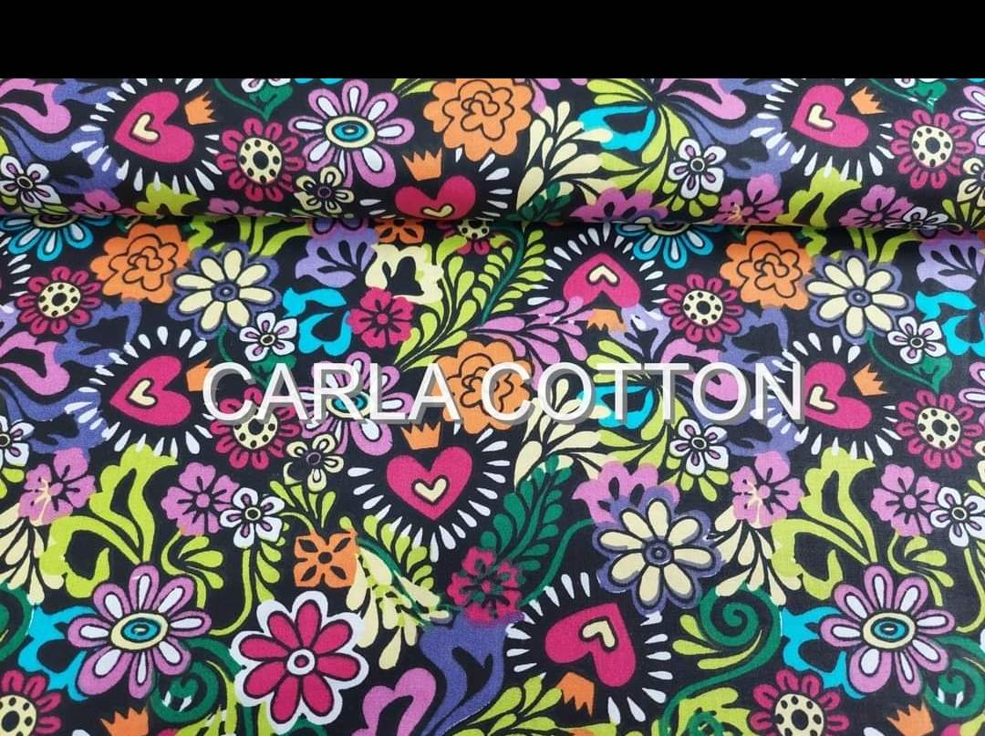 Cupon Bumbac cu Flori si inimioare - 2.15 x 1.40cm