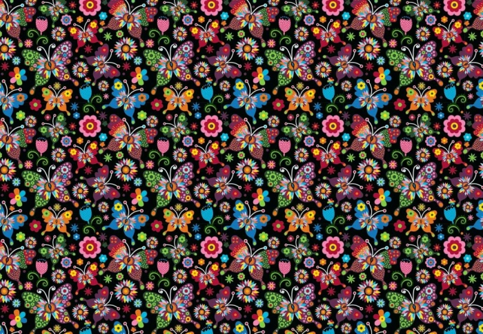 Cupon Bumbac cu Fluturi pe negru - dimensiune 0.45 x 1.60m
