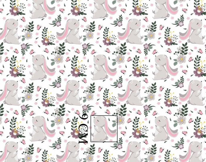 Cupon Bumbac cu Iepurasi pe roz - dimensiune 0.84 x 1.60 cm