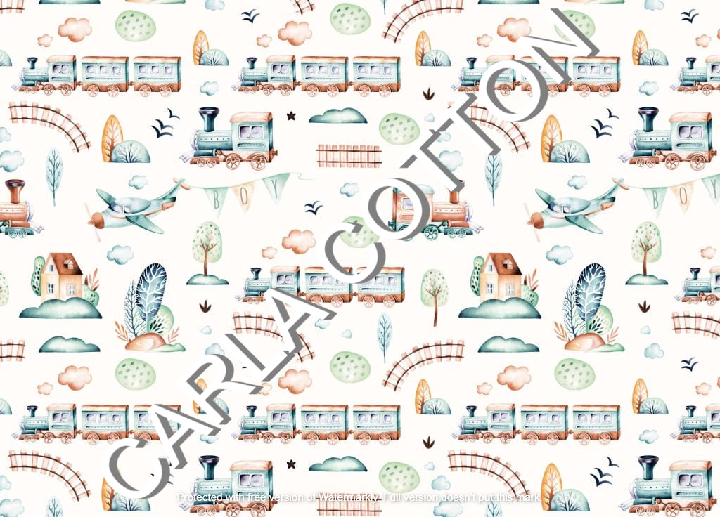 Cupon Bumbac cu Trenulete - dimensiune 0,49 x1.60 cm