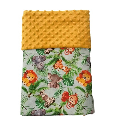 Păturica este moale, extrem de confortabilă, realizată dintr-o combinatie de bumbac 100% pe o parte și minky pufos pe cealaltă, 2 materiale sigure pentru pielea bebelușilor.