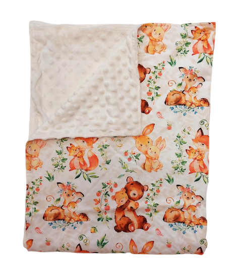 Păturică bebe cu model Paturică bebe cu Ursuleți  și minky ecru.