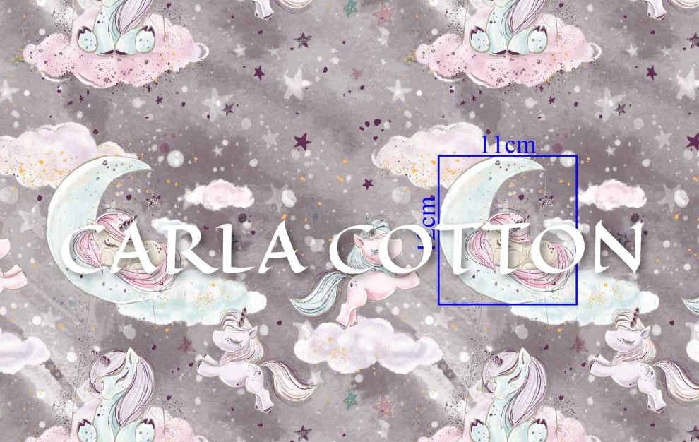 Bumbac cu model Unicorni cu glitter auriu pe fundal gri